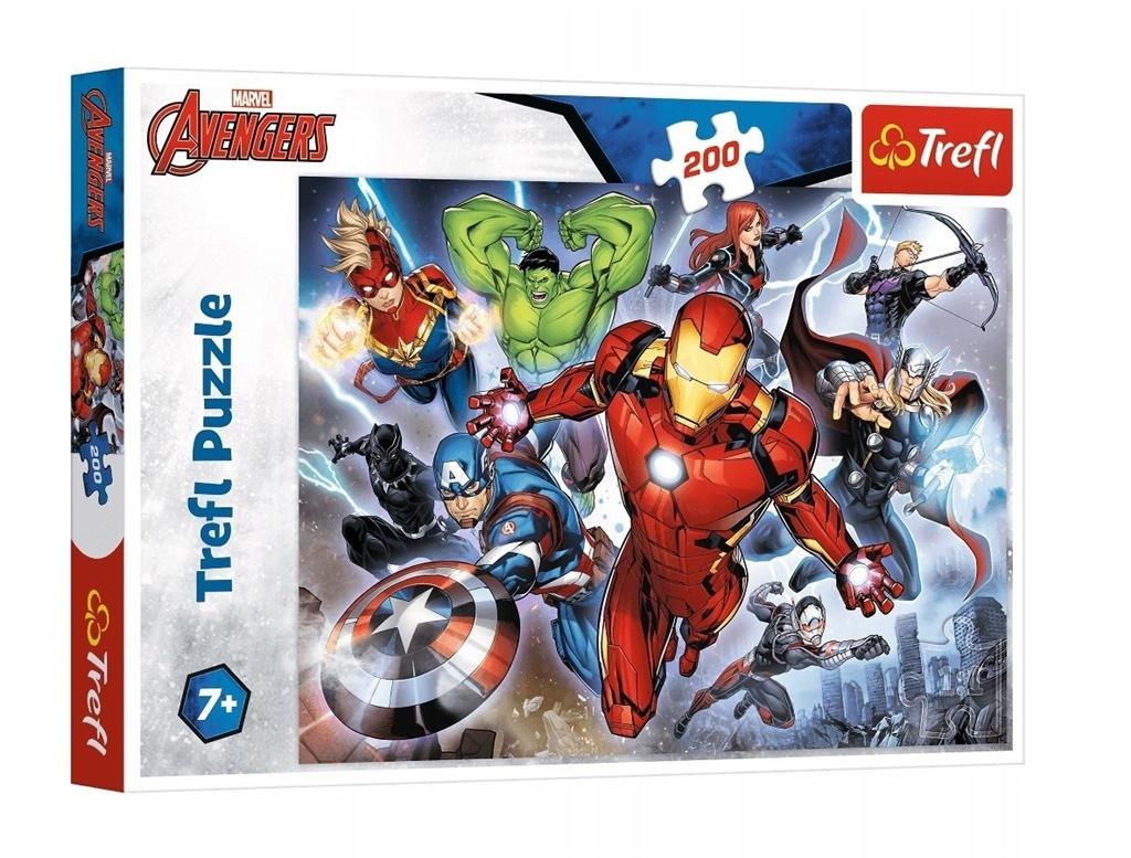 Puzzle składające się z 200 elementów przedstawiające bohaterów Avengers. Produkt został wykonany z wysokiej jakości materiałów, z zastosowaniem specjalnego kalandrowanego papieru odbijającego światło, co ułatwia układanie. Produkt został wyprodukowany w Polsce, a do produkcji zostały użyte materiały ekologiczne.
