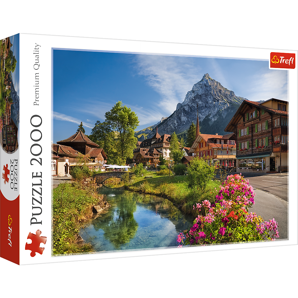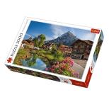 Puzzle 2000 elementów z widokiem na Alpy w porze letniej. Po ułożeniu powstanie obrazek o wymiarach 96x68 cm. Wysoką jakość, nasycenie kolorów i bezpieczeństwo układania zapewnia kalandrowany papier odbijający światło, pokryty ekologicznymi farbami spożywczymi.