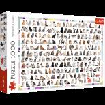 Puzzle 1000 elementów przedstawiające 208 kotów. Po ułożeniu powstanie obrazek o wymiarach 68x48 cm. Wysoką jakość, nasycenie kolorów i bezpieczeństwo układania zapewnia kalandrowany papier odbijający światło, pokryty ekologicznymi farbami spożywczymi.