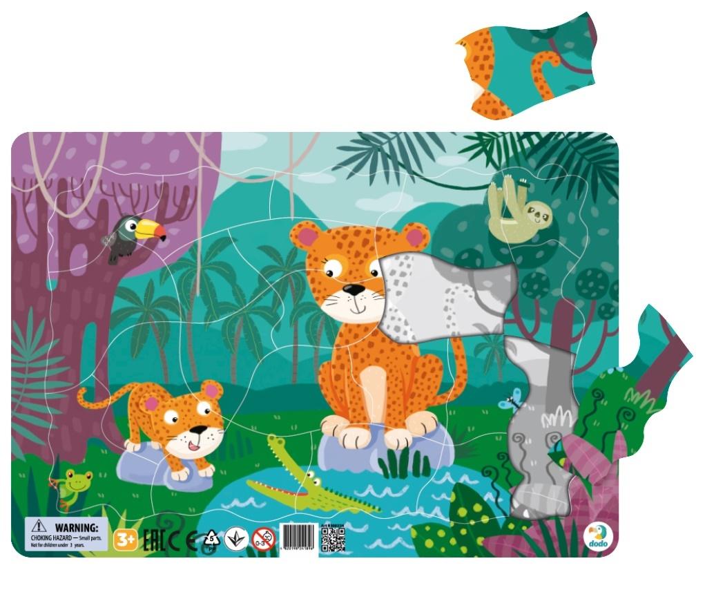 W serii DODO Puzzle Ramkowe 21 elementów można odkryć 7 zestawów: Lamparty, Liski, Niedźwiadki, Pandy, Szczeniaczki, Wiewiórki oraz Żyrafy.
