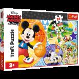 Puzzle składające się z 24 bardzo dużych elementów, zaprojektowaną z myślą o wszystkich fanach i fankach Myszki Miki. Po ułożeniu układanki powstanie duży obrazek, o wymiarach 600x400mm. Produkt został wykonany z wysokiej jakości materiałów, z zastosowaniem specjalnego kalandrowanego papieru odbijającego światło, co ułatwia układanie. Produkt został wyprodukowany w Polsce, a do produkcji zostały użyte materiały ekologiczne.