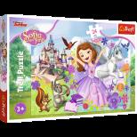 Puzzle stworzone specjalnie z myślą o dzieciach powyżej 3 roku życia. Układankę tworzą 24 bardzo duże puzzlowe elementy, dzięki czemu dzieci poradzą sobie z samodzielnym ułożeniem obrazka. Zabawa rozwija zdolności manualne, spostrzegawczość i daje radość samodzielnego tworzenia. Piękna grafika w stylu Disneya sprawi radość miłośniczkom serii Jej Wysokość Zosia. Wymiary obrazka po ułożeniu: 60 x 40 cm. Wiek 3+