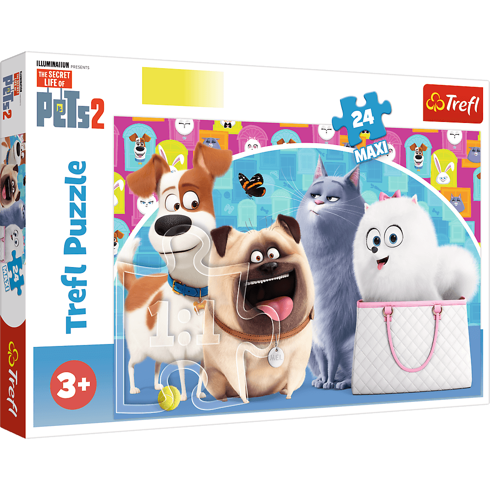 Puzzle 24 Maxi Wesołe pupile Universal Secret Life of Pets 2 Wymiary po ułożeniu: 60 x 40 cm Wiek 3+