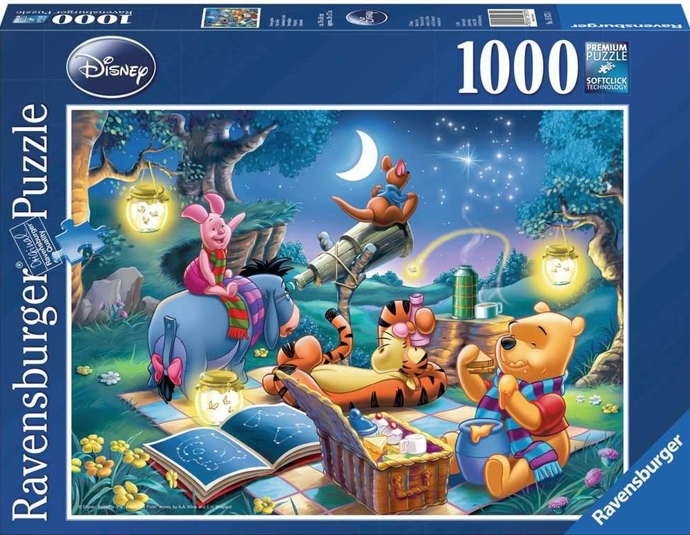 Puzzle 1000 elementów Ravensburger z motywem Kubuś PuchatekPo ułożeniu puzzle mają wymiary 70 x 50 cmSą przeznaczone dla osób powyżej 14. roku życia.