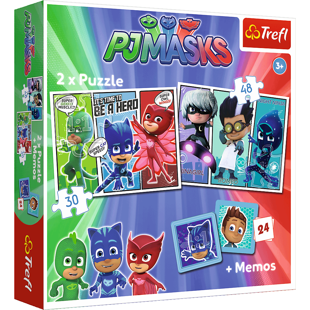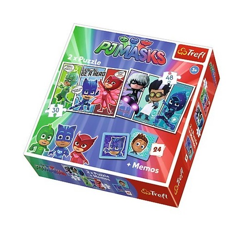 Podwójna radość układania! Puzzle 2w1 "Nocni wojownicy" to dwie układanki różnej wielkości z obrazkami przedstawiającymi bohaterów filmu animowanego Pidżamersi. Zestaw doskonale spełnia oczekiwania rodzeństwa - każdy ułoży swój ulubiony obrazek nawet w tym samym czasie. Zróżnicowana liczba elementów pozwala na zabawę zarówno młodszym, jak i nieco starszym dzieciom. Dodatkowym urozmaiceniem zabawy są karty memo z postaciami bajki. Puzzle przyjazne dziecku! Do produkcji puzzli użyliśmy ekologicznych farb spożywczych i płótnowanego papieru eliminującego odbijanie światła, co gwarantuje bezpieczeństwo i radość zabawy. Zawartość pudełka: 1 układanka 48 elementów 1 układanka 30 elementów 24 karty memo