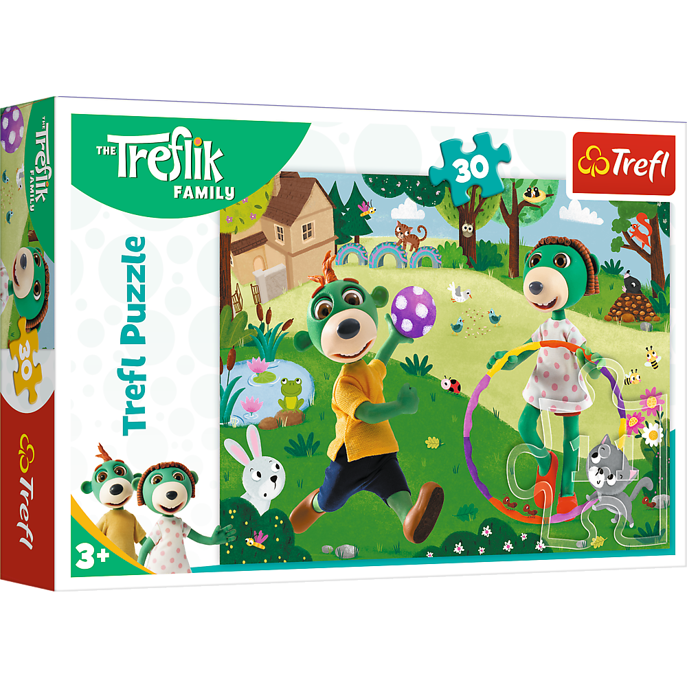 Puzzle Aktywny dzień składające się z 30 elementów, zaprojektowaną z myślą o wszystkich fanach i fankach serialu animowanego Rodzina treflików.