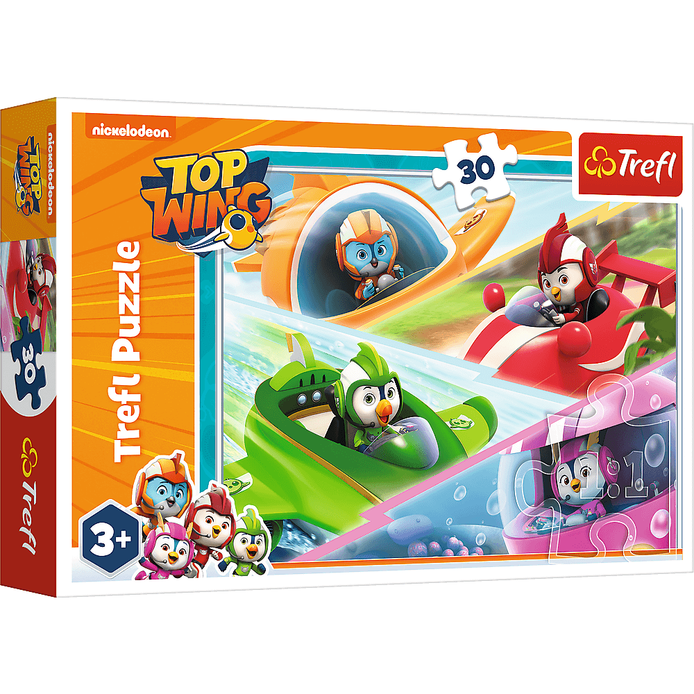 Wyścig Ptasiej Akademii to puzzle składające się ze 30 elementów, zaprojektowaną z myślą o wszystkich fanach i fankach Top Wings. Po ułożeniu układanki powstanie obrazek o wymiarach 270x200mm.