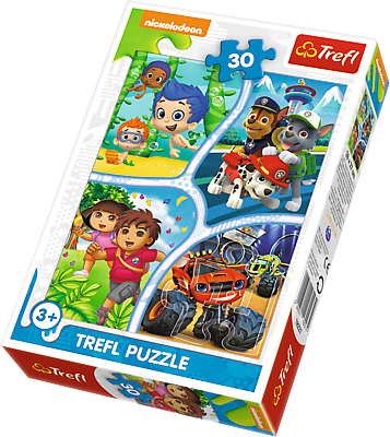 Puzzle 30 elementów z uwielbianymi przez dziewczynki postaciami filmów animowanych Nickelodeon. Po ułożeniu powstanie obrazek o wymiarach 20x27cm. Wysoką jakość, nasycenie kolorów i bezpieczeństwo układania zapewnia wykorzystanie materiałów ekologicznych.
