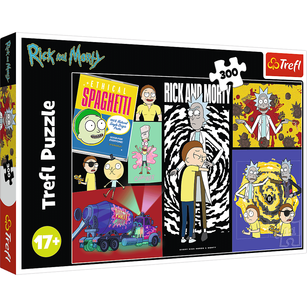 Dziwne miejsce w galaktyce to puzzle składające się z 300 elementów przedstawiające postać bajki Ricky i Morty. Po ułożeniu układanki powstanie obrazek o wymiarach 600x400 mm. Produkt wykonano z wysokiej jakości materiałów, z zastosowaniem specjalnego kalandrowanego papieru, który odbija światło, co ułatwia układanie. Puzzle zostały wyprodukowane w Polsce, a do produkcji zostały użyte materiały ekologiczne.