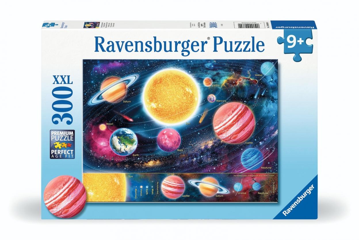 Układ Słoneczny 300p Odkryj idealne dopasowanie! Ravensburger ma idealną układankę dla każdego dziecka. Dzięki interesującym motywom, strategicznie dobranym rozmiarom elementów i różnorodnym formatom sukces jest gwarantowany dla wszystkich grup wiekowych i poziomów umiejętności. Ciesz się jakością Ravensburger dzięki tej rodzinnej rozrywce! Wiek: 9+