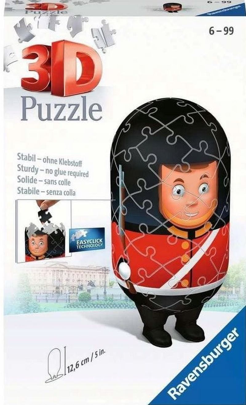 Twórz wyjątkowe konstrukcje 3D z puzzlami 3D od firmy Ravensburger! Odkryj nowy, trójwymiarowy sposób układania puzzli. Elementy tych puzzli zostały wykonane ze sztywnego tworzywa sztucznego, które pozwala na utrzymanie się konstrukcji bez użycia kleju. Ułożone przedmioty nie rozwarstwiają się, a puzzle mocno trzymają się siebie. Materiał użyty do produkcji klocków jest łatwy w czyszczeniu, wystarczy użyć wilgotnej szmatki.