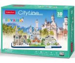 PUZZLE 3D CITYLINE BAWARIA to pasjonująca zabawa dla dzieci i dla dorosłych. Cityline to wyjątkowa linia producenta Cubic Fun, która ukazuje panoramę danego miasta wraz z najbardziej charakterystycznymi dla niego zabytkami. W opakowaniu znajduje się 178 puzzli, wykonanych ze specjalnego materiału przypominającego piankę. Puzzle są ponumerowane, ponacinane i umieszczone na arkuszach. Wystarczy bez użycia siły wycisnąć element z arkusza i zmontować go zgodnie z dołączoną instrukcją, bez użycia kleju ani specjalnych narzędzi. Wielkość budowli po złożeniu 48 x 22,4 x 26,9 cm. Zalecany wiek dziecka 8+.