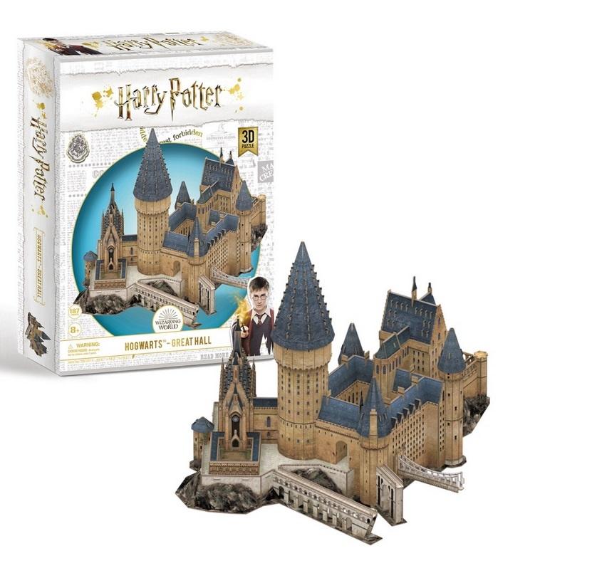 Nowy model puzzli 3D na licencji Harrego Pottera. Już od 1997, kiedy to ukazała się pierwsza książka z serii, miliony dzieci i dorosłych pokochały świat czarodziejów. Teraz mogą poznać go jeszcze bliżej dzięki naszej nowej serii! Budowla osiąga po złożeniu wymiary 46,4 x 53,20 x 39,70. Do montażu nie jest wymagany klej, nożyczki ani inne specjalne narzędzia. Wszystkie puzzle są ponumerowane i ponacinane, a sposób ich układania jest pokazany w instrukcji. Zestaw zawiera 187 elementów Wiek 8+