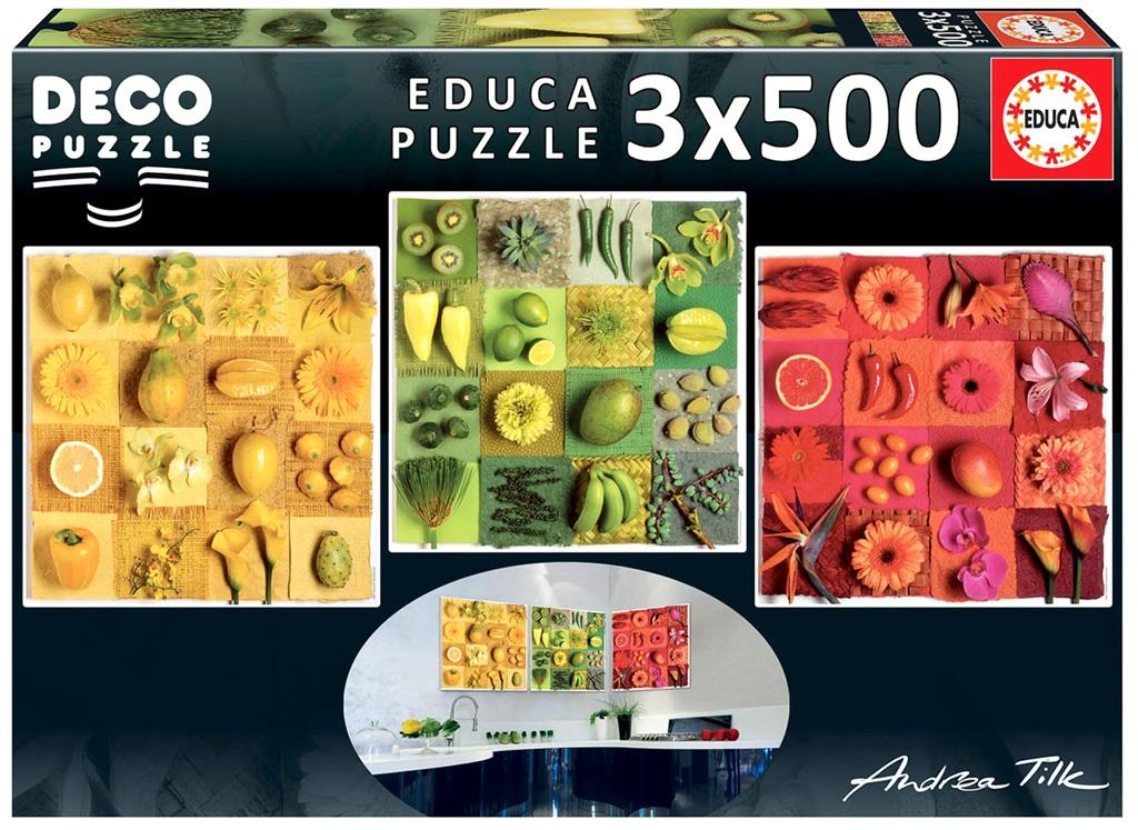 Puzzle 3x500 Kwiaty, owoce, warzywa G3