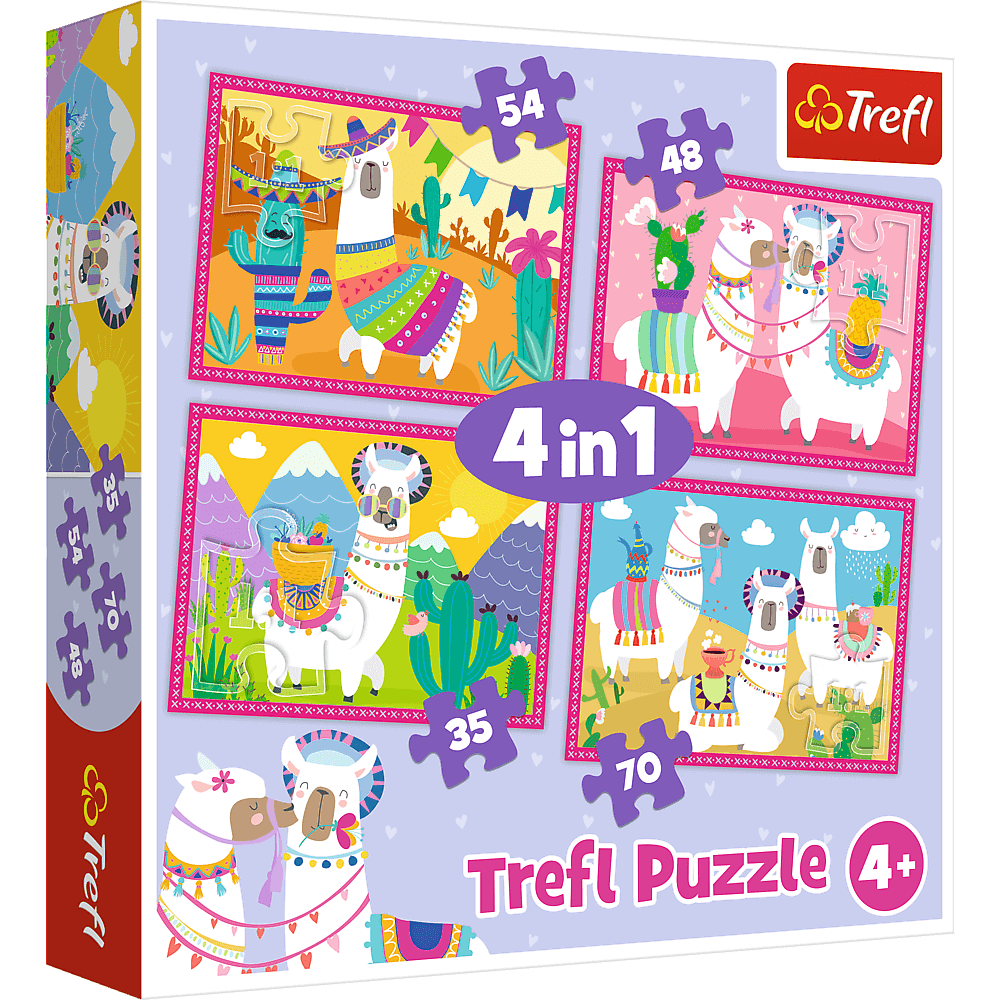 Opakowanie Puzzle 4w1 Lamy na wakacjach TREFL