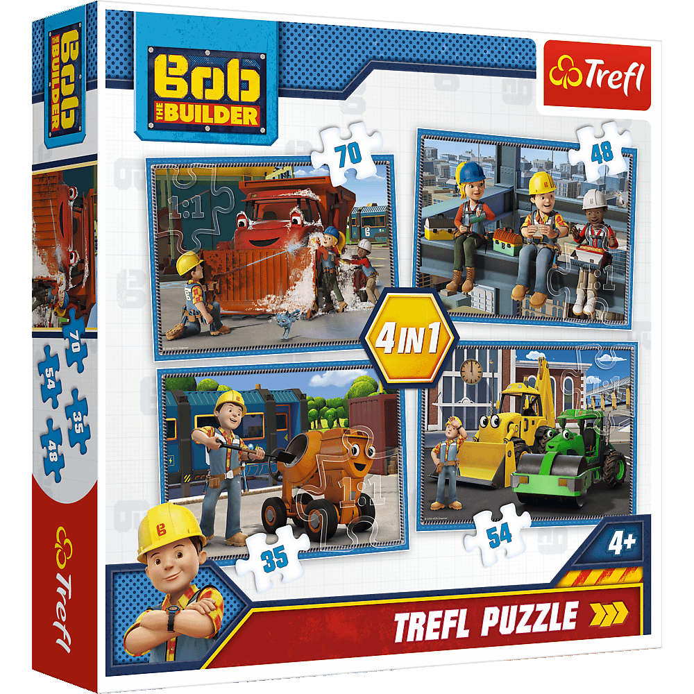 Nie jedna, nie dwie, ale aż cztery układanki dla dzieci zamknięte w jednym pudełku to prawdziwa gratka dla miłośników puzzli! Po ułożeniu otrzymamy cztery obrazki różnej wielkości z bohaterami serialu "Bob Budowniczy". Zestaw doskonale spełnia oczekiwania rodzeństwa - każdy ułoży swój ulubiony obrazek nawet w tym samym czasie. Zróżnicowana liczba elementów pozwala na zabawę zarówno młodszym, jak i nieco starszym dzieciom. Dodatkowym urozmaiceniem zabawy może być układanie na czas, porównywanie obrazków, szukanie różnic i podobieństw. Puzzle przyjazne dziecku! Do produkcji puzzli użyliśmy materiałów ekologicznych i płótnowanego papieru eliminującego odbijanie światła, co gwarantuje bezpieczeństwo i radość zabawy. Zawartość pudełka: 1 układanka 70 elementów 1 układanka 54 elementy 1 układanka 48 elementów 1 układanka 35 elementów