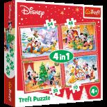 Puzzle składające się z 4 niezależnych układanek, zaprojektowane z myślą o wszystkich fanach i fankach Myszki Miki.Po ułożeniu układanek powstaną obrazki ze świątecznym motywem o wymiarach 285 x 205mm. Zróżnicowana liczba elementów pozwala na zabawę zarówno młodszym, jak i nieco starszym dzieciom. Produkt został wykonany z wysokiej jakości materiałów, z zastosowaniem specjalnego kalandrowanego papieru odbijającego światło, co ułatwia układanie. Produkt został wyprodukowany w Polsce, a do produkcji zostały użyte materiały ekologiczne.