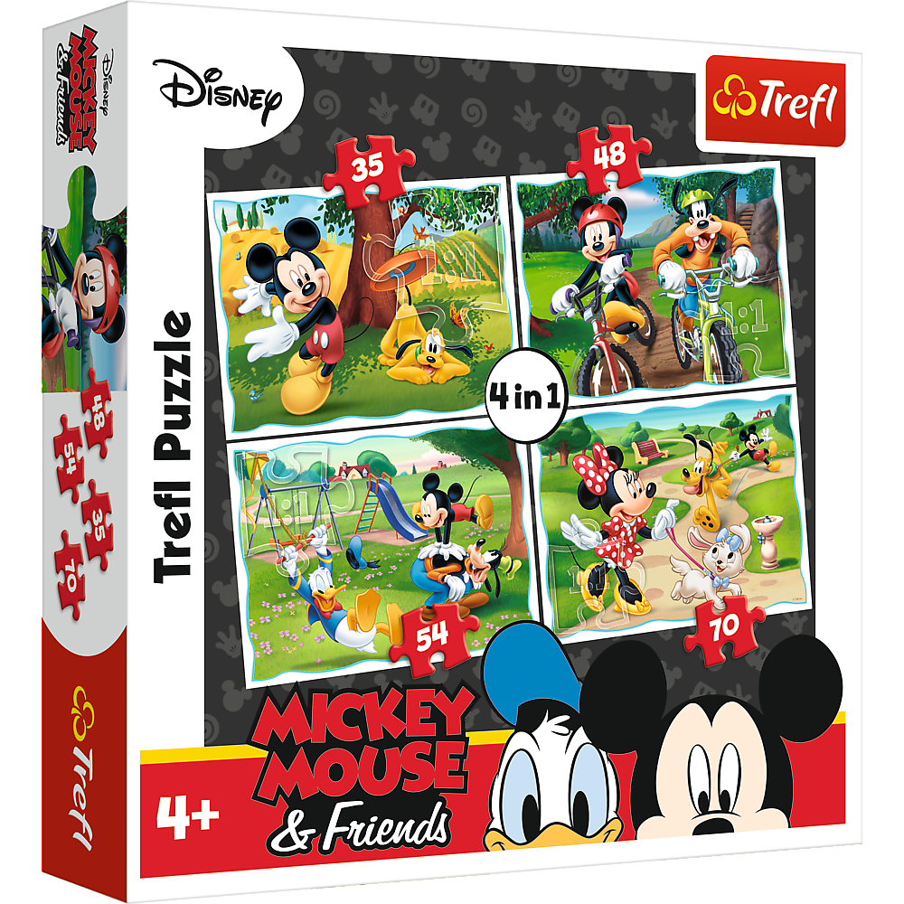 Nie jedna, nie dwie, ale aż cztery układanki zamknięte w jednym pudełku to prawdziwa gratka dla miłośników puzzli! Po ułożeniu otrzymamy cztery obrazki różnej wielkości z uwielbianymi przez dzieci Myszką Miki i jej przyjaciółmi. Zestaw doskonale spełnia oczekiwania rodzeństwa - każdy ułoży swój ulubiony obrazek nawet w tym samym czasie. Zróżnicowana liczba elementów pozwala na zabawę zarówno młodszym, jak i nieco starszym dzieciom. Dodatkowym urozmaiceniem zabawy może być układanie na czas, porównywanie obrazków, szukanie różnic i podobieństw. Piękna grafika w stylu Disneya i możliwość wspólnego tworzenia to powody, dla których dzieci uwielbiają układać puzzle.