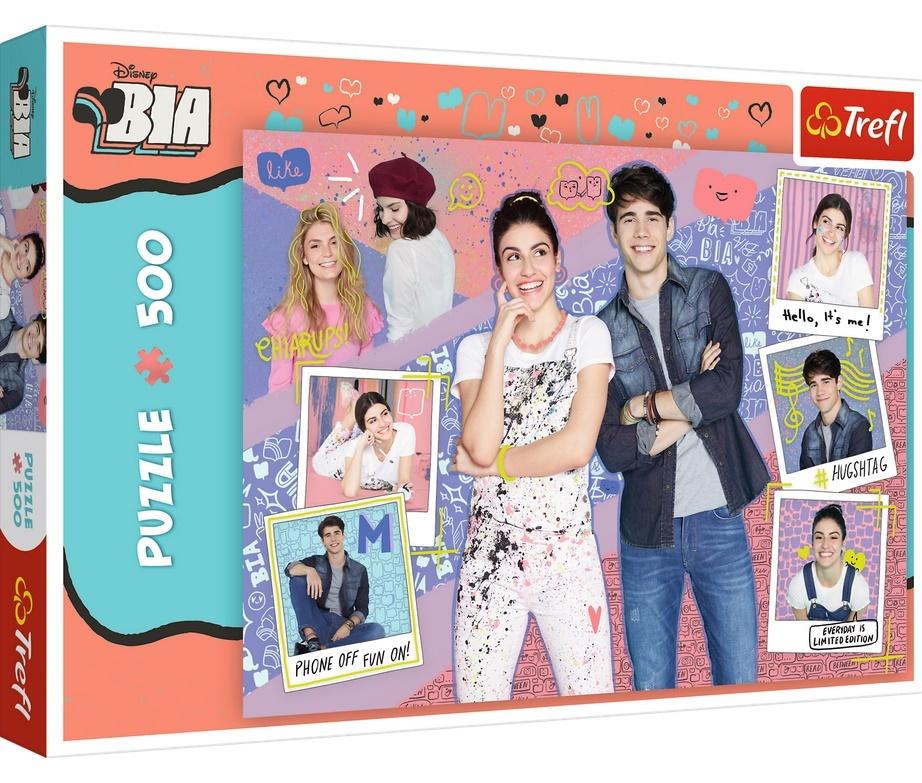 Bia i przyjaciele to puzzle 500 elementów z postaciami serialu Disneya BIA. Po ułożeniu powstanie obrazek o wymiarach 48x34 cm. Wysoką jakość, nasycenie kolorów i bezpieczeństwo układania zapewnia kalandrowany papier odbijający światło, pokryty ekologicznymi farbami spożywczymi.