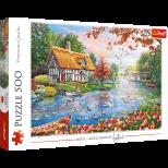Puzzle Cicha przystań składają się z 500 elementów i po ułożeniu stworzą obraz artysty Angelo Bonito przedstawiający, otoczony kwiatami, dom nad rzeką. Gotowa układanka ma wymiary 480x340 mm.
