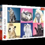 Kociaki to puzzle 500 elementów z kolażem słodkich kotów różnych ras na kolorowych tłach. Po ułożeniu powstanie obrazek o wymiarach 48x34 cm. Wysoką jakość, nasycenie kolorów i bezpieczeństwo układania zapewnia kalandrowany papier odbijający światło, pokryty ekologicznymi farbami spożywczymi.