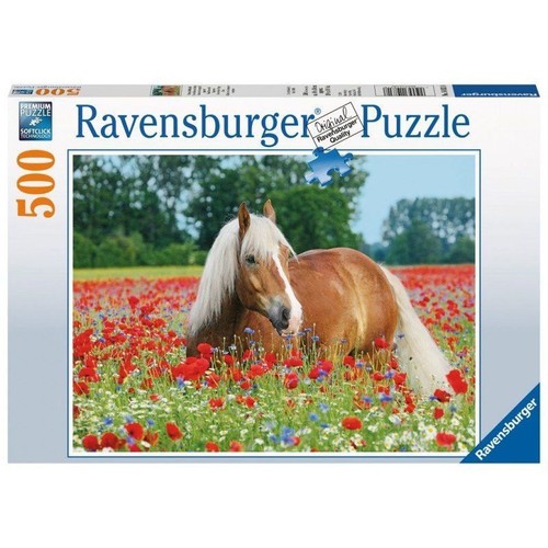 Puzzle 500 elementów - Koń w łące maków Wymiary po ułożeniu: 49 x 36 cm Wiek 7+