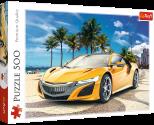Puzzle 500 elementów przedstawiające imponujące sportowe auto w pięknym, żółtym kolorze z letnią, miejską scenerią w tle. Po ułożeniu powstanie obrazek o wymiarach 48x34 cm. Wysoką jakość, nasycenie kolorów i bezpieczeństwo układania zapewnia kalandrowany papier odbijający światło, pokryty ekologicznymi farbami spożywczymi.