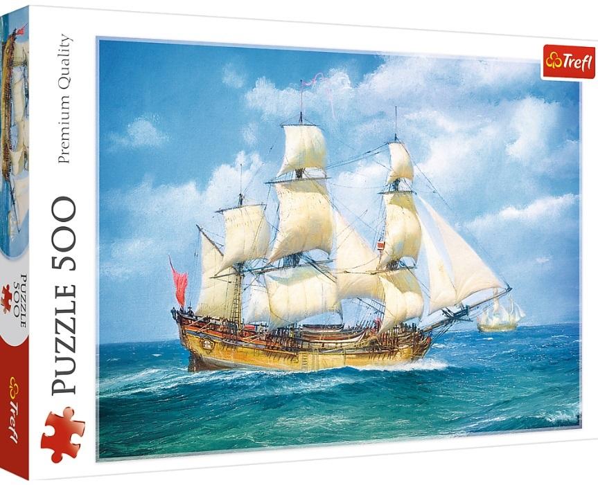 Puzzle firmy Trefl ""Morska podróż"" składające się z 500 elementów. Po ułożeniu powstanie obrazek o wymiarach 48x34 cm. Produkt został wykonany z wysokiej jakości materiałów, z zastosowaniem specjalnego kalandrowanego papieru odbijającego światło, co ułatwia układanie. Produkt został wyprodukowany w Polsce, a do produkcji zostały użyte materiały ekologiczne.