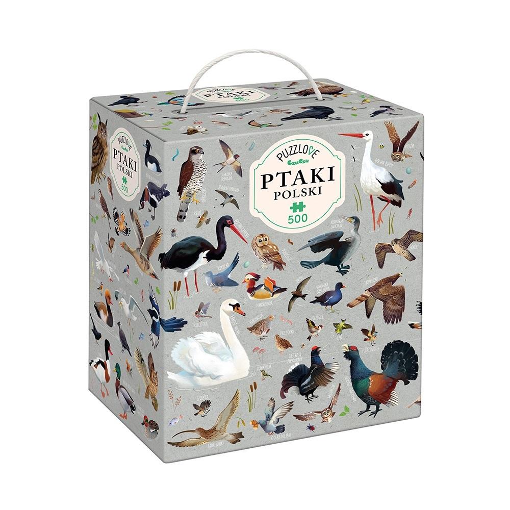 Frrru! Ogromne puzzle składają się z 500 elementów. Przedstawiają 85 ptaków, które można spotkać w Polsce. Część możemy spotkać na spacerze, ale niektóre są naprawdę rzadkie! Układajcie je tak, jak lubicie: