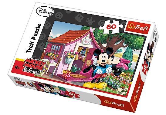 Puzzle 60 elementów z Mikim i Minnie . Po ułożeniu powstanie obrazek o wymiarach 33x22 cm. Wysoką jakość, nasycenie kolorów i bezpieczeństwo układania zapewnia kalandrowany papier odbijający światło, pokryty ekologicznymi farbami spożywczymi.
