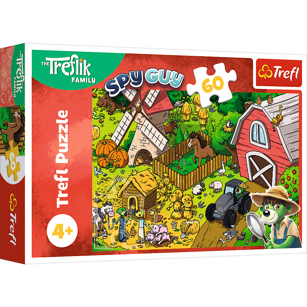 Trefliki na farmie to puzzle składające się z 60 elementów, zaprojektowane z myślą o małych fanach wiejskiego życia. Puzzle przedstawiają Trefliki opiekujące się zwierzętami gospodarskimi. Po ułożeniu układanki powstanie obrazek o wymiarach 330x220 mm. Produkt wykonano z wysokiej jakości materiałów, z zastosowaniem specjalnego kalandrowanego papieru, który odbija światło, co ułatwia układanie. Puzzle zostały wyprodukowane w Polsce, a do produkcji zostały użyte materiały ekologiczne. Dla dzieci w wieku od 4 lat