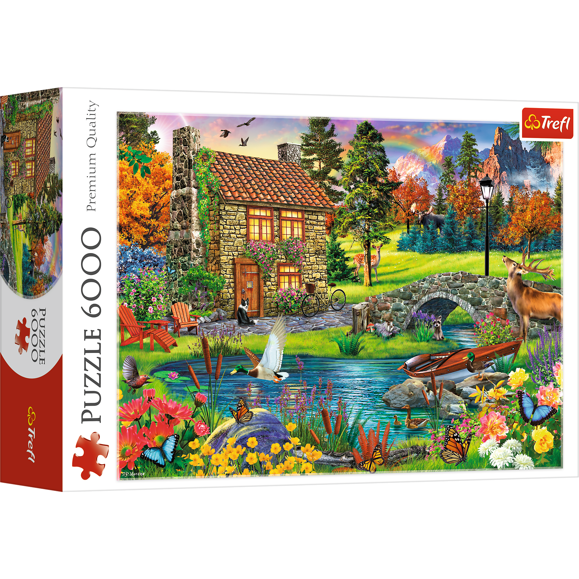 Imponującej wielkości puzzle składające się z aż 6000 elementów przedstawiające cudowny widok na górską chatkę. Po ułożeniu powstanie obraz o wymiarach 1360x960 mm. Produkt został wykonany z wysokiej jakości materiałów, z zastosowaniem specjalnego kalandrowanego papieru odbijającego światło, co ułatwia układanie. Produkt został wyprodukowany w Polsce, a do produkcji zostały użyte materiały ekologiczne.