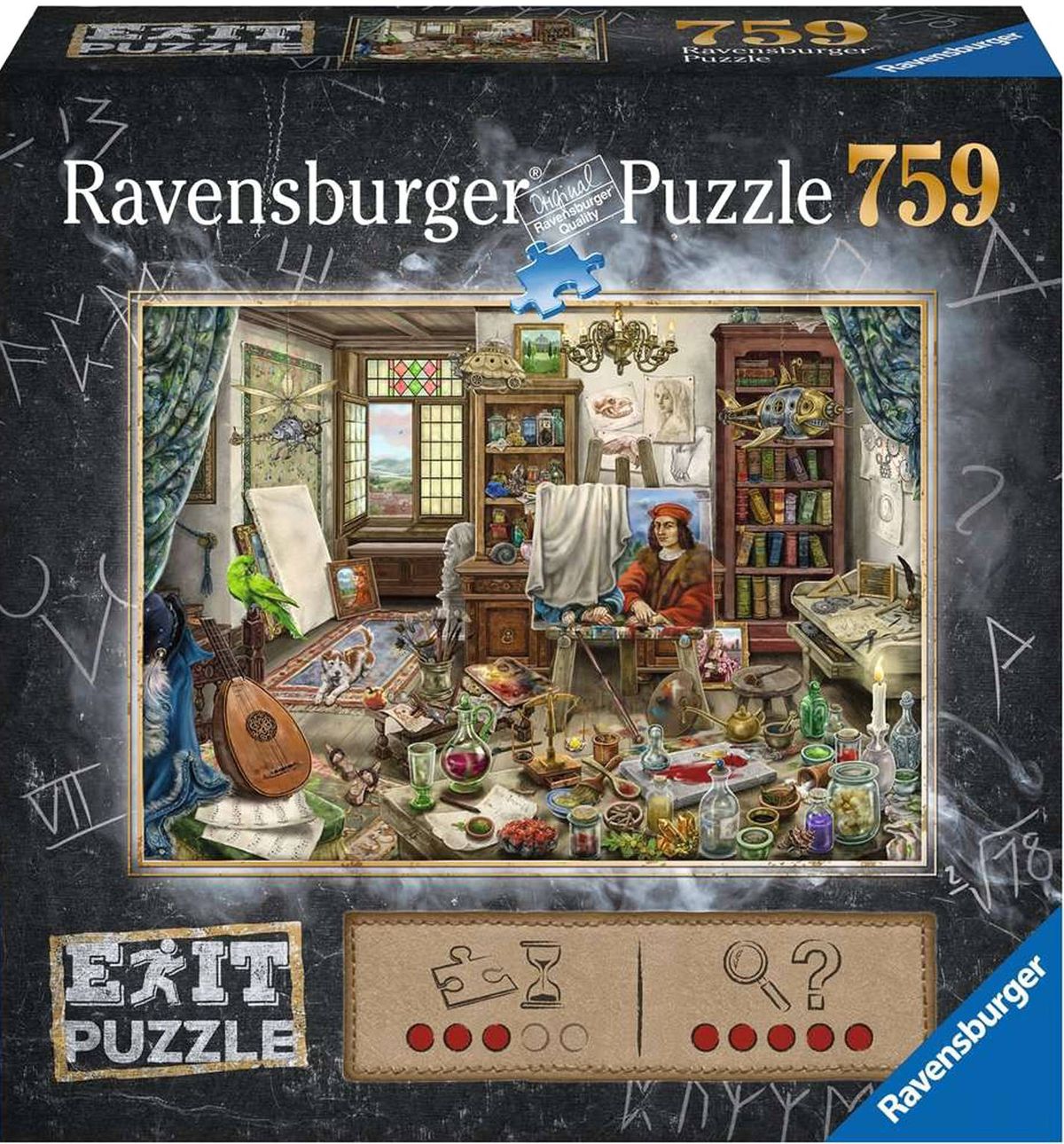 Seria Puzzle Exit marki Ravensburger to koncepcja gry typu escape room w formie puzzli. Dopiero po ułożeniu puzzli, można rozwiązać unikalną zagadkę charakterystyczną dla każdego z motywów. Ułóż 759 elementów i rozwiąż ukryte zagadki. Możesz uzyskać dodatkowe wskazówki, skanując kod QR - a jeśli wszystko inne zawiedzie, użyj ostatecznej podpowiedzi podanej w zapieczętowanej kopercie.