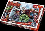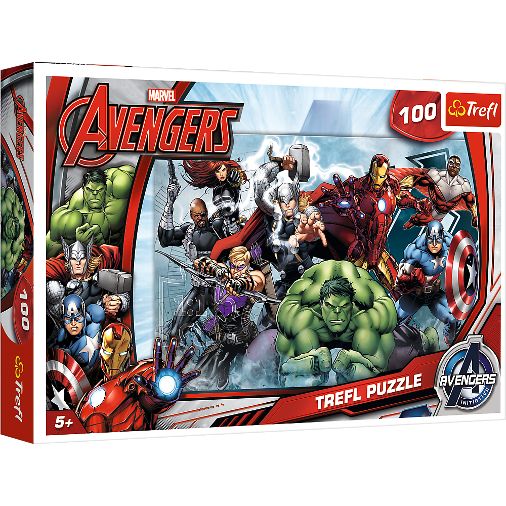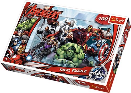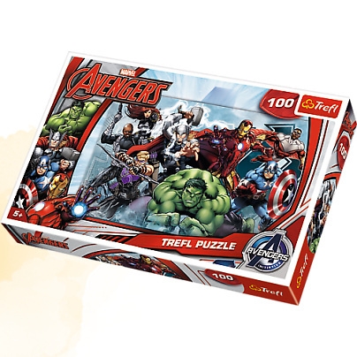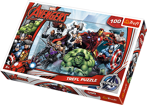Puzzle 100 elementów z superbohaterami z drużyny Avengers. Po ułożeniu powstanie obrazek o wymiarach 41x27,8 cm. Wysoką jakość, nasycenie kolorów i bezpieczeństwo układania zapewnia kalandrowany papier odbijający światło i wykorzystanie materiałów ekologicznych. Puzzle na licencji Marvel.