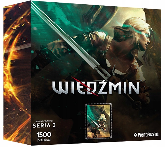 Geralt, Ciri, Jaskier, Triss i inni bohaterowie, których wszyscy fani Wiedźmina doskonale znają zdobią okładki dwóch serii ekskluzywnie wydanych puzzli. W każdym pudełku znajduje się wysokiej jakości układanka składająca się z 1500 elementów o wymiarach 58x85 cm, plakat z układanym wzorem oraz płócienny woreczek z symbolem Białego Wilka. Grzbiet każdego z pudełek zdobi fragment grafiki z Ciri (seria 1) lub Gerltem (seria 2). W pełni skompletowana seria doskonale będzie prezentować się na półce.
