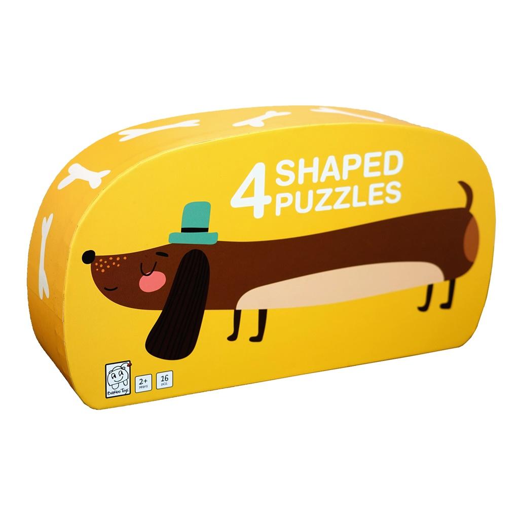 Puzzle dla dzieci w ozdobnym pudełku, Pies, zestaw 4 układanek, 16 elementów.