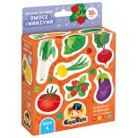 Soczyście kolorowe układanki przedstawiają zdrowe pyszności z ogrodu i sadu. Wyszukiwanie i łączenie połówek to wszechstronnie rozwijająca zabawa, która doskonali koordynację ręka-oko i pozwala poznawać i utrwalać nowe słowa i wiedzę o otaczającym nas świecie na wesoło.