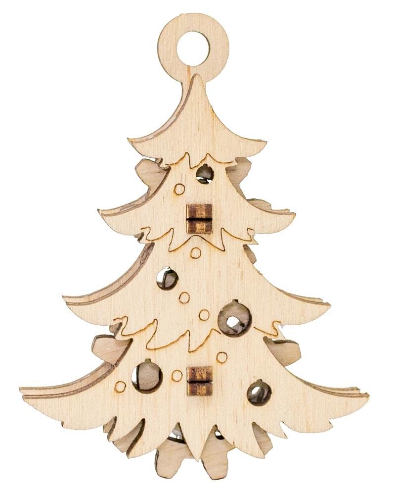 Mała, mechaniczna zabawka antystresowa w kształcie choinki, wykonana z wysokiej jakości sklejki brzozowej. Zestawy mają postać arkuszy z wstępnie wyciętymi i ponumerowanymi elementami, które przed montażem należy oddzielić od wykroju, a następnie połączyć bez użycia kleju, zgodnie ze szczegółową instrukcją dołączoną do opakowania. Model zaprojektowany i wykonany w Europie.