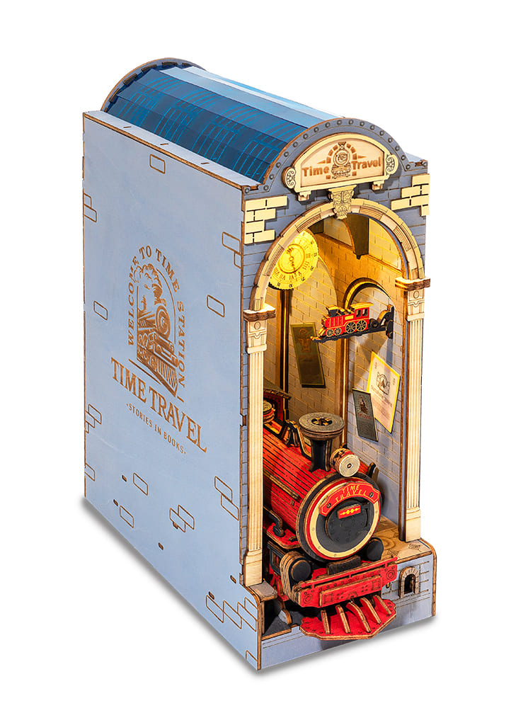 Przygotuj się na podróż w czasie z tym zestawem miniaturowego domku dla lalek. Jest to ozdoba półki, którą można zbudować samodzielnie. Zestaw umożliwiający złożenie miniaturowego dworca kolejowego. Do budowy modelu wykorzystano między innymi drewno, papier, tkaniny, drut, tworzywo sztuczne oraz różne elementy ozdobne takie jak: kolorowe cekiny, koraliki, sztuczne kwiaty oraz wiele innych materiałów. Dodatkowego uroku nadaje całości oświetlenie LED, dzięki któremu domek może pełnić rolę nastrojowej dekoracji lub lampki nocnej. Opakowanie oprócz czytelnej, obrazkowej instrukcji zawiera także baterie, pędzelek, farby akrylowe, przezroczysty, bezwonny klej oraz pęsetę ułatwiającą montaż małych elementów. Budowa tego modelu pomoże rozwinąć zdolności manualne i przyniesie dużo satysfakcji.