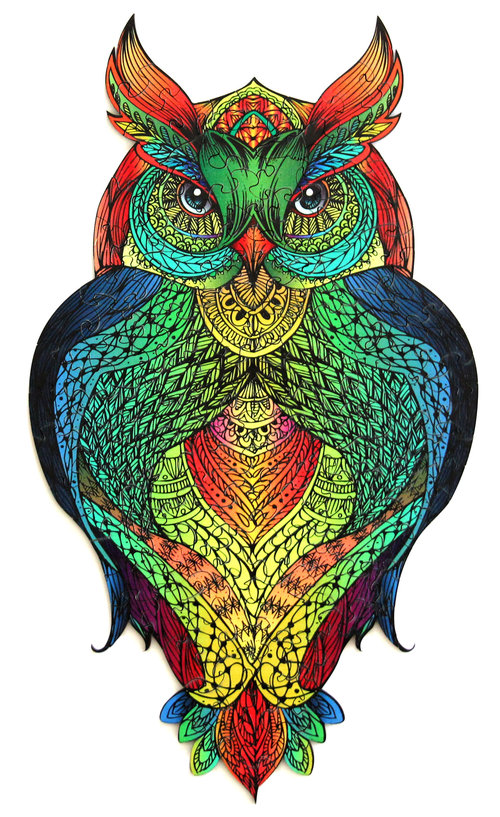 Opakowanie Puzzle drewniane kolorowe Sowa