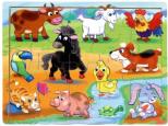 Drewniane puzzle z motywem Wiejskich zwierzątek firmy TOP BRIGHT. Zabawka składa się z 20 elementów. Puzzle są wykonane z ekologicznego, wysokiej jakości drewna, bez BPA. Barwione nietoksyczną farbą na bazie wody, zgodnie z międzynarodowymi standardami bezpieczeństwa zabawek. Wielkość pojedynczego puzzla: ok 5,5x4,5cm. Zabawka o wymiarach: 30x22,5x1cm. Zabawka przeznaczona dla dzieci od 12m+.