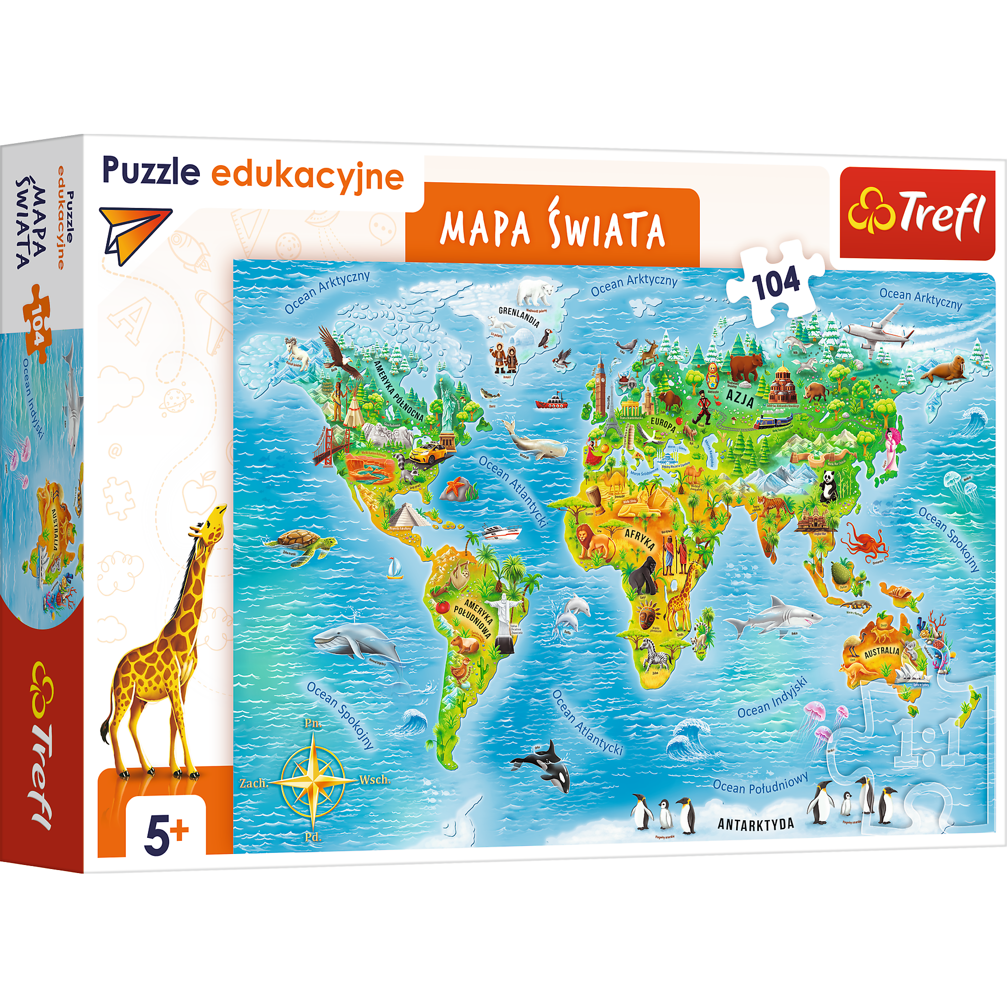 PUZZLE EDUKACYJNE 104 MAPA ŚWIATA NOWA PL