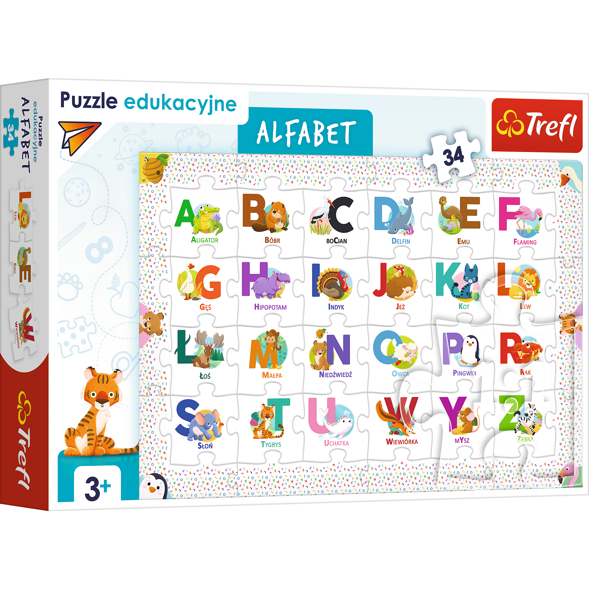 Puzzle Edukacyjne 34 Alfabet zestaw puzzli edukacyjnych składający się ze 34 elementów.
