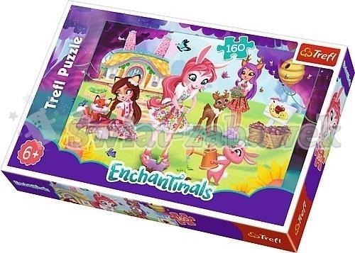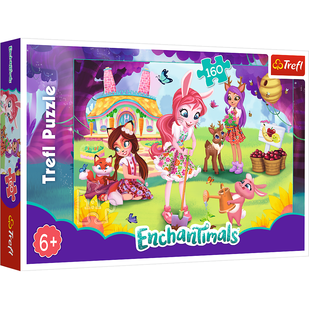 Puzzle 160 elementów z Enchantimals. Po ułożeniu powstanie obrazek o wymiarach 41x27,8 cm. Wysoką jakość, nasycenie kolorów i bezpieczeństwo układania zapewnia kalandrowany papier odbijający światło, pokryty ekologicznymi farbami spożywczymi.
