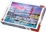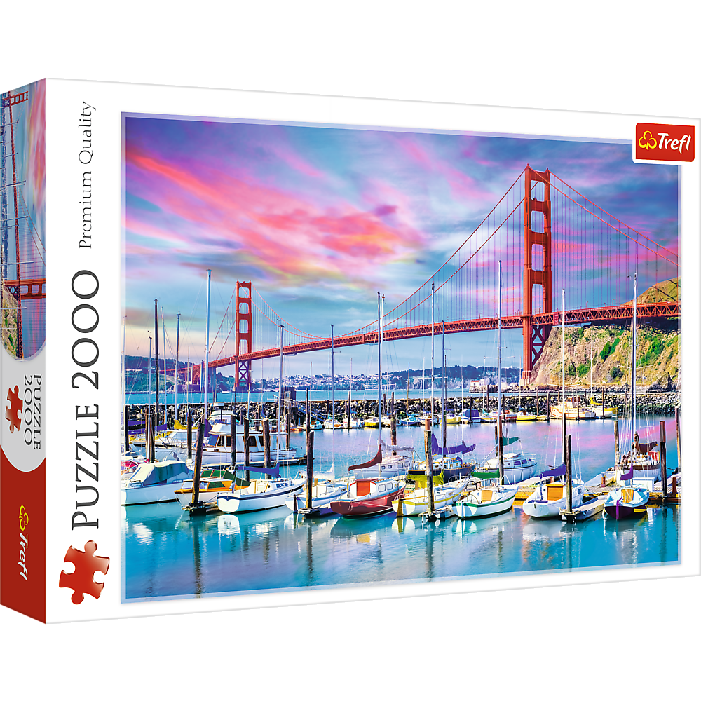 Puzzle 2000 elementów z widokiem na most Golden Gate. Po ułożeniu powstanie obrazek o wymiarach 96x68 cm. Wysoką jakość, nasycenie kolorów i bezpieczeństwo układania zapewnia kalandrowany papier odbijający światło, pokryty ekologicznymi farbami spożywczymi