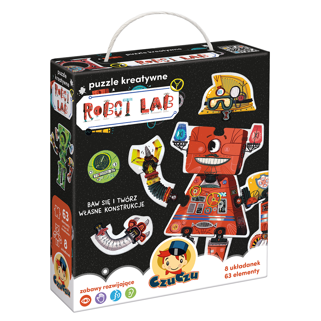 Puzzle kreatywne Robot Lab pozwalają na mnóstwo twórczej i rozwijającej zabawy. To nie tylko doskonały sposób, by rozwijać małą motorykę, spostrzegawczość i wyobraźnię, ale także zainteresować dzieci w wieku przedszkolnym techniką i wynalazkami.