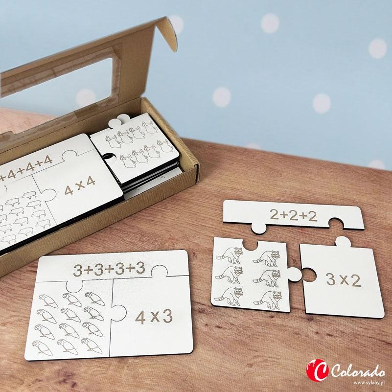 Dziecko układając puzzle widzi zależność pomiędzy mnożeniem, a dodawaniem.