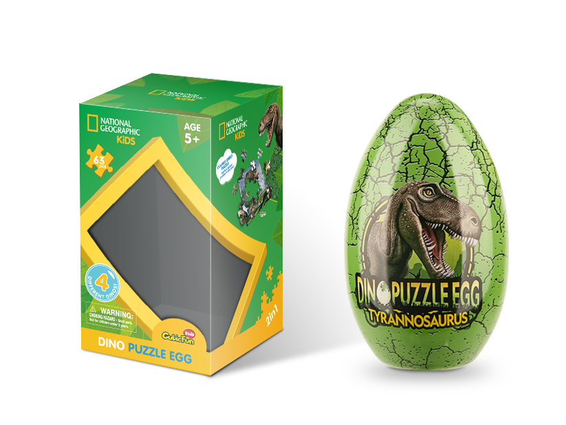 Puzzle Tyranozaura Rexa na licencji National Geographic w opakowaniu o kształcie jajka.