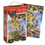 Edukacyjne puzzle z zabawną i pełną zaskakujących szczegółów ilustracją zapraszają w podróż do świata starożytnej Grecji. Poznajcie mieszkańców Olimpu, odważnych herosów oraz fantastyczne stwory i potwory. Dwuetapowa zabawa polega na ułożeniu puzzli, a następnie na odszukaniu na obrazku elementów znajdujących się na ramce układanki. Do puzzli dołączono dwustronny edukacyjny plakat z podpisami i ciekawostkami, który można wykorzystać jako wzór do układania. Liczba elementów: 425. Wymiar układanki i plakatu: 48x68 cm.