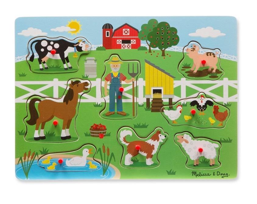Dołącz do farmera, Old MacDonald i jego sympatycznych przyjaciół, którzy pomogą zaśpiewać znaną piosenkę z dzieciństwa. Kołki na kawałkach puzzli pomagają dzieciom łatwo chwytać i manipulować ośmioma elementami układanki (rolnik, krowa, świnia, koń, kurczęta, kaczki, pies i owca).  Farmer Old MacDonald rozpoczyna piosenkę a podnosząc każde zwierzątko, dziecku usłyszy dalszą część piosenki wraz z charakterystycznym odgłosem wydawanym przez odkryte zwierzątko. Piosenka jest wykonywana w języku angielskim.
